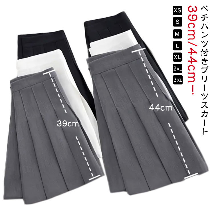 プリーツスカート 39 44cm ミニ プリーツスカート ペチパンツ付き XS~3XLレディースファッション ボトムス スカート