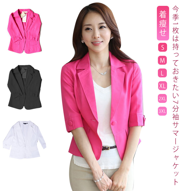 S~3XL オフィス テーラードジャケット 着瘦せ 薄手 七分袖レディースファッション コート ジャケット