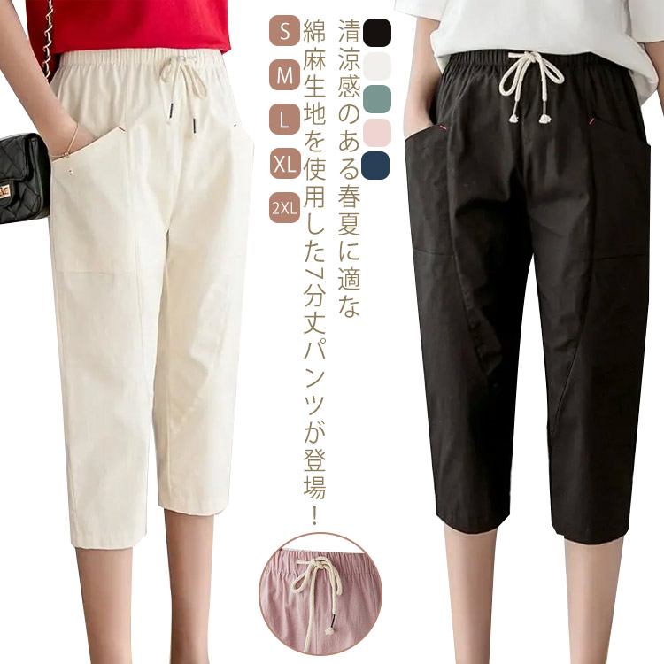 サルエルパンツ 七分丈 着瘦せ 着瘦せ 通気 ウエストゴム S~2XLレディースファッション ボトムス パンツ