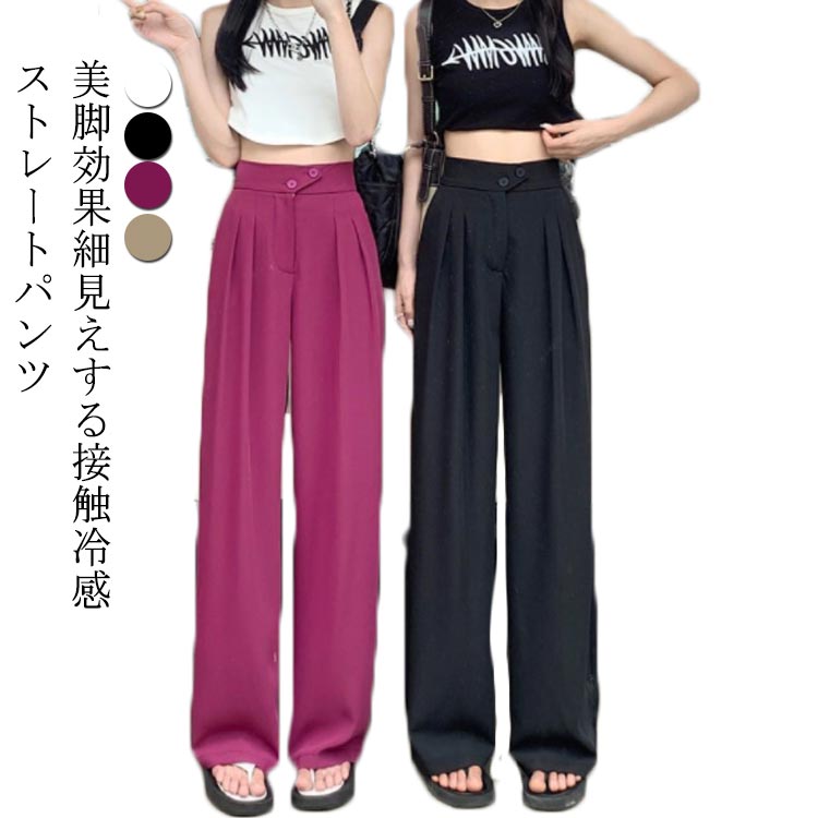 S~4XL S~4XL ワイドパンツ スーツパンツ ハイウエスト ひんやりレディースファッション ボトムス パンツ