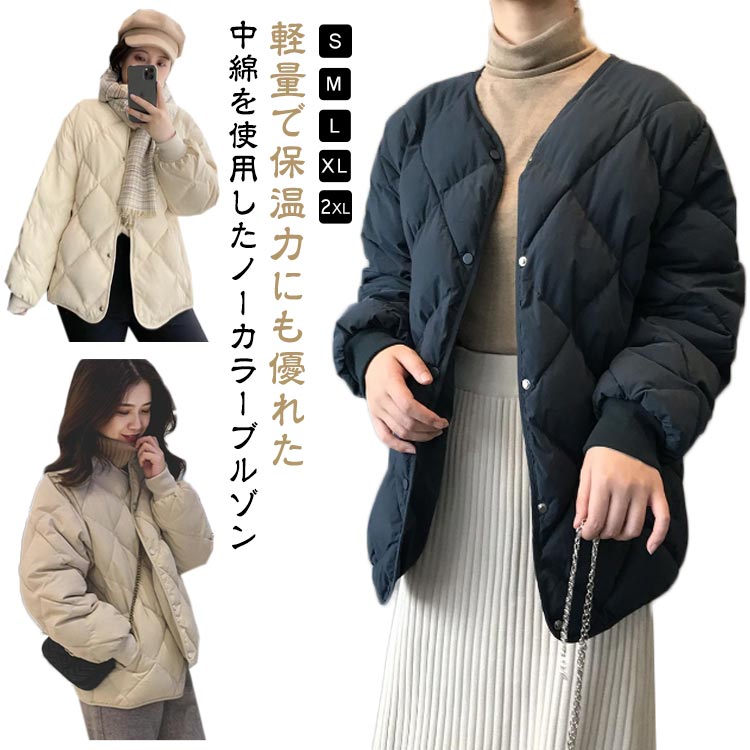 ノーカラー キルティング中綿ジャケット キルティング中綿ジャケット あったか S~2XLレディースファッション コート ジャケット