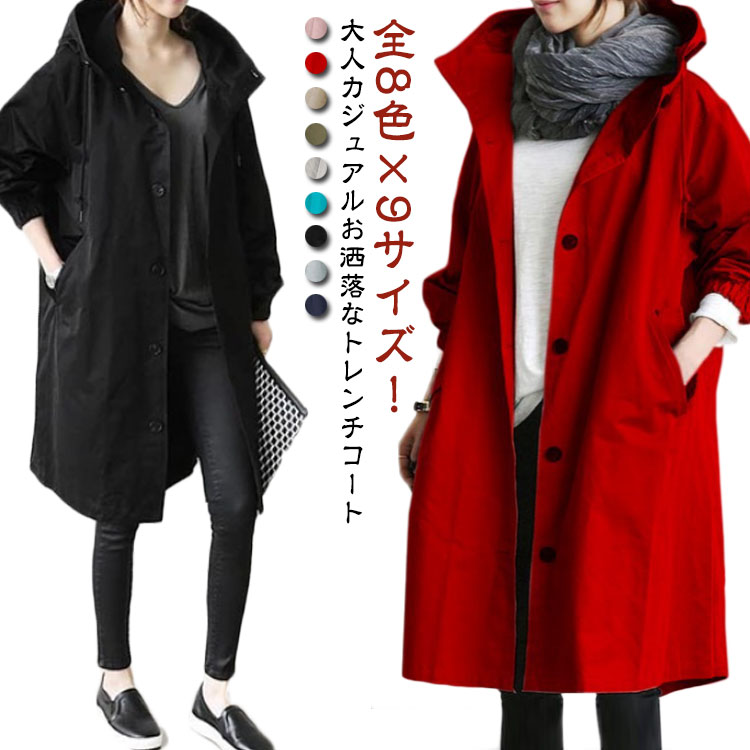 ~5 春秋 ロング丈トレンチコート 体型カバー フード付きレディースファッション コート ジャケット