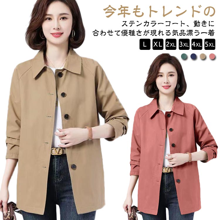 体型カバー ステンカラーコート カジュアル 大人女性 L~5XLレディースファッション コート ジャケット