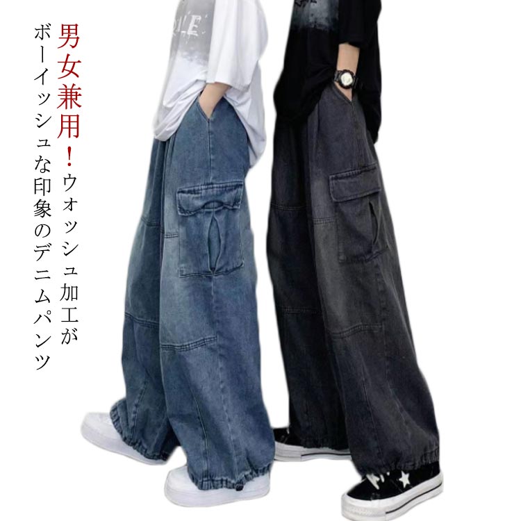 M~3XL 男女兼用 男女兼用 ビッグシルエット デニムパンツレディースファッション ボトムス パンツ