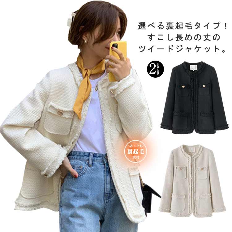 ~ ノーカラー エレガント 大人女性 ツイードジャケットレディースファッション コート ジャケット