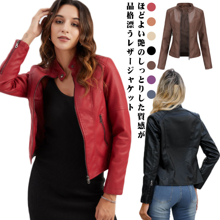 美脚 ライダースジャケット フェイクレザー 立ち襟 ~4レディースファッション コート ジャケット