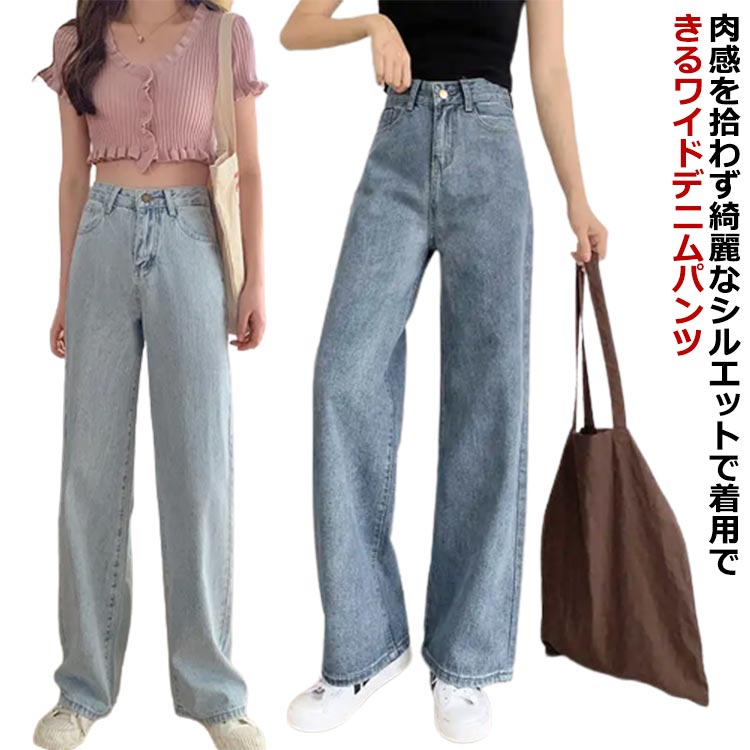 XS~2XL デニムパンツ 美脚 ワイドパンツ XS~2XL 着瘦せレディースファッション ボトムス パンツ