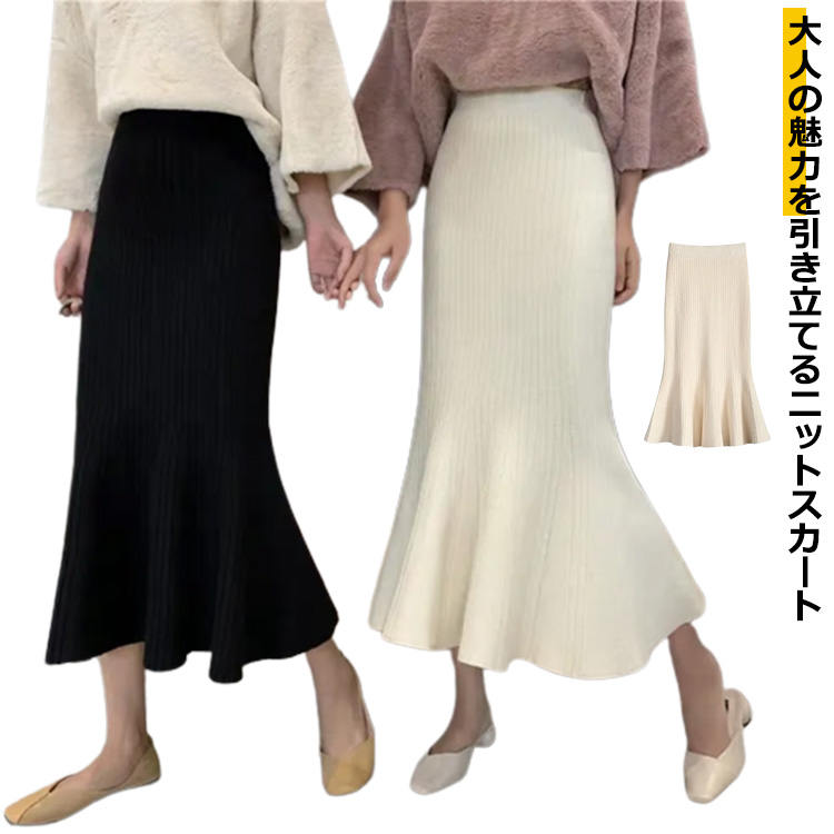 フレアスカート ロング丈 きれいめ ニットスカート ニットスカート 着瘦せレディースファッション ボトムス スカート
