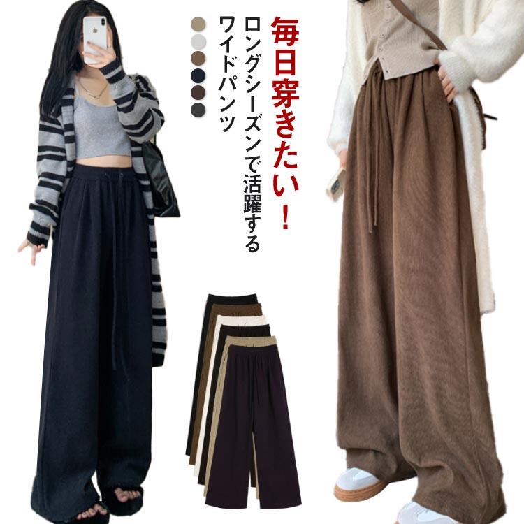 ~ 選べる丈感 着瘦せ 体型カバー 選べる丈感 ワイドパンツレディースファッション ボトムス パンツ