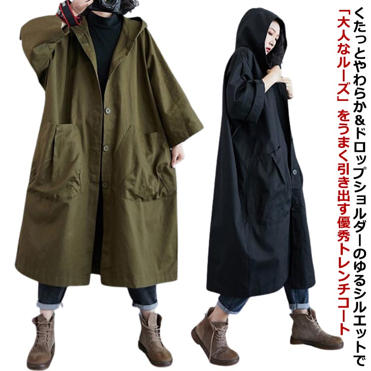 体型カバー ポケット付き トレンチコート カジュアル ロング丈レディースファッション コート ジャケット