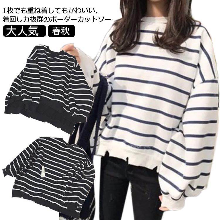 ドロップショルダー クールネック 長袖 シャツ 大人 トップス カットソー カジュアル かわいい おしゃれ 春秋 冬 大人可愛い チュニック プルオーバー ボーダー オーバーサイズ ギフト コーデ