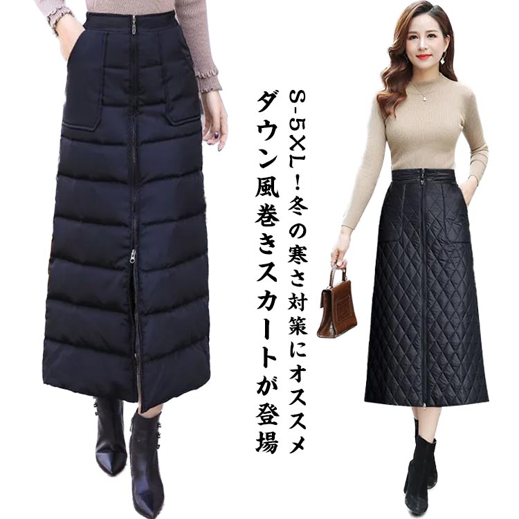 中綿スカート ロング丈 あったか S~5XL Aライン 体型カバーレディースファッション ボトムス スカート