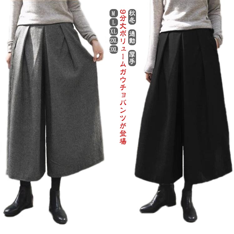 M~3XL ワイドパンツ 7分丈 OL 秋冬 7分丈 シンプル 無地レディースファッション ボトムス パンツ