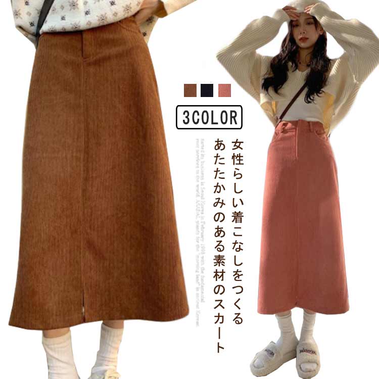 体型カバー スリットデザイン スカート 秋冬 きれいめ カジュアル ロングスカート コーデュロイスカート スカート 女子 学生 コーデュロイ 美脚 ハイウエスト 大人可愛い レディース 無地 シンプル