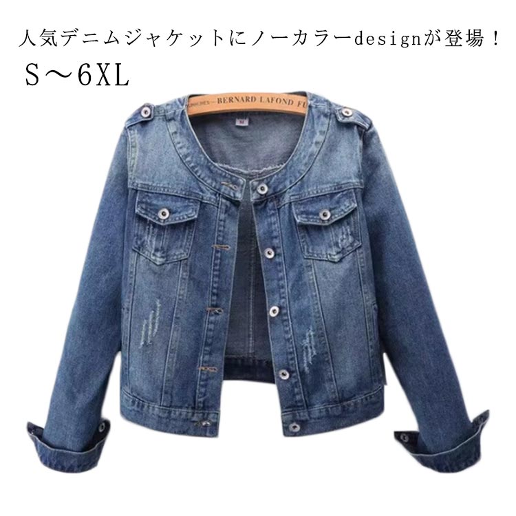 ショート丈 S~6XL ノーカラー S~6XL 着瘦せ デニムジャケットレディースファッション コート ジャケット