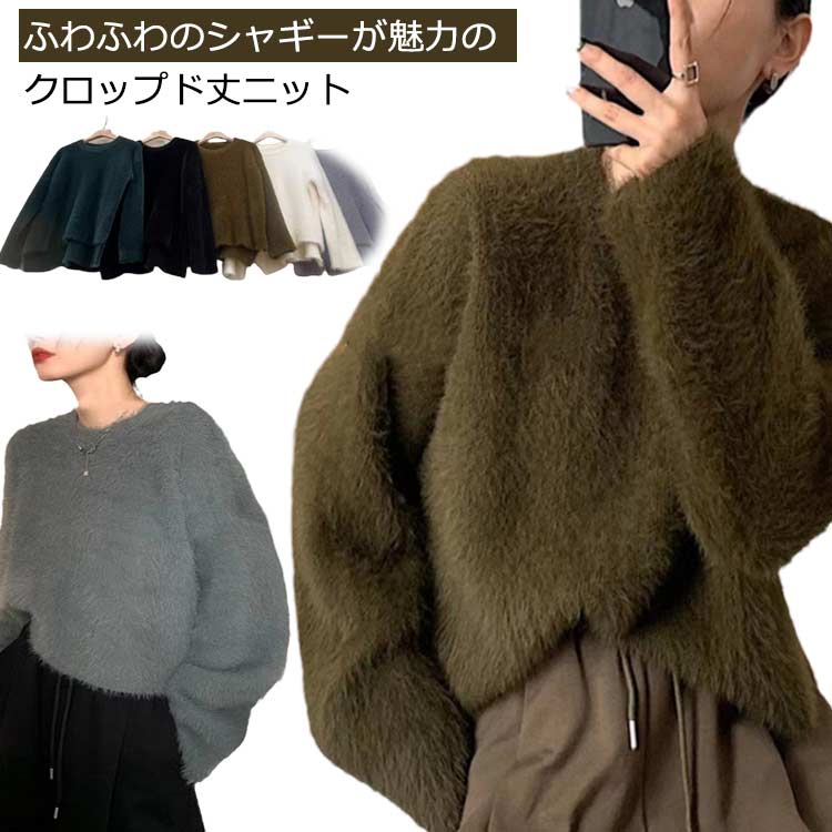 もこもこ もこもこ 可愛い ミディアム丈 無地 シャギーニットレディースファッション トップス ニット セーター セーター