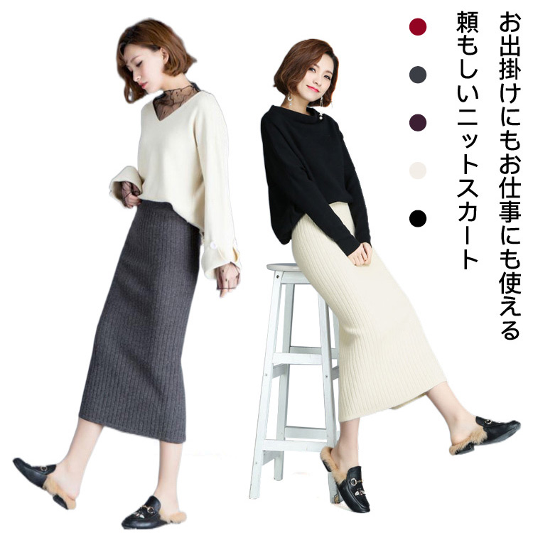 S~XL ニットスカート 体型カバー ウエストゴム 美脚 きれいめレディースファッション ボトムス スカート