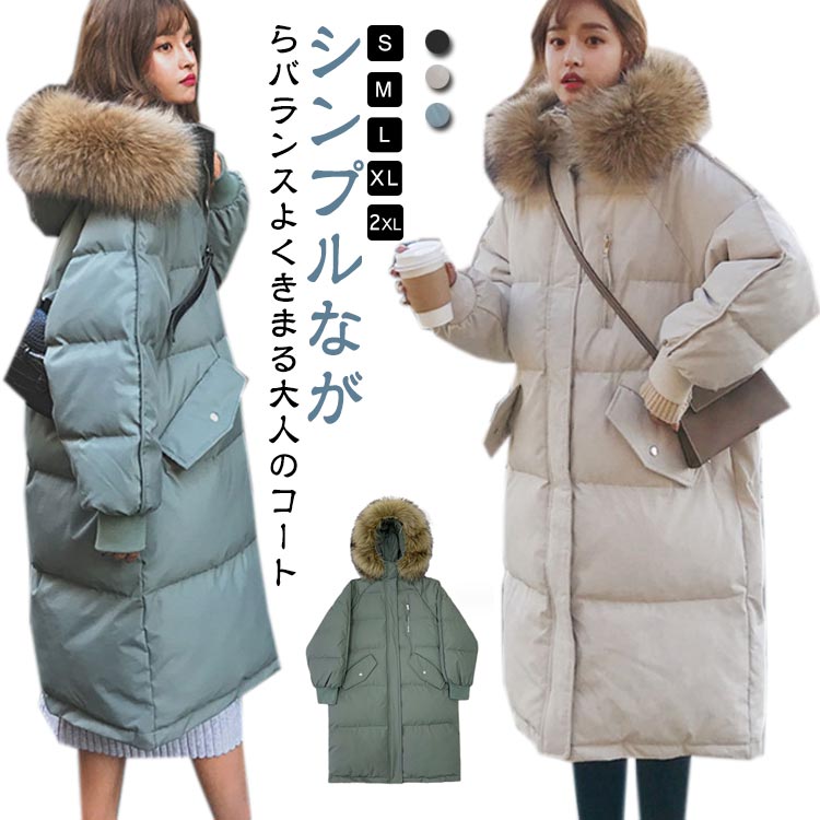 フェイクファーフード S~2XL 中綿コート ロング丈 着痩せレディースファッション コート ジャケット