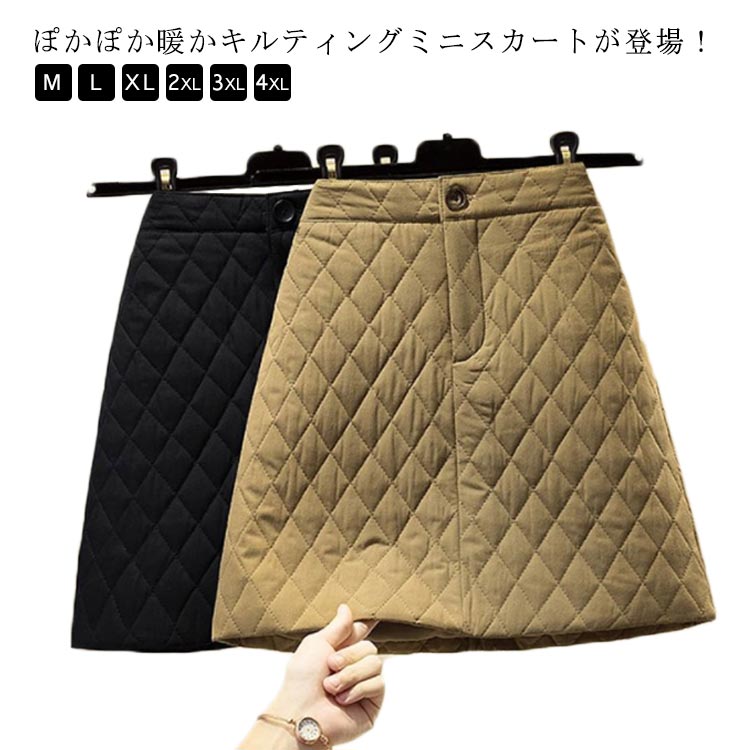 aライン キルティングスカート M~4XL あったか ショート丈 キルティングスカートレディースファッション ボトムス スカート
