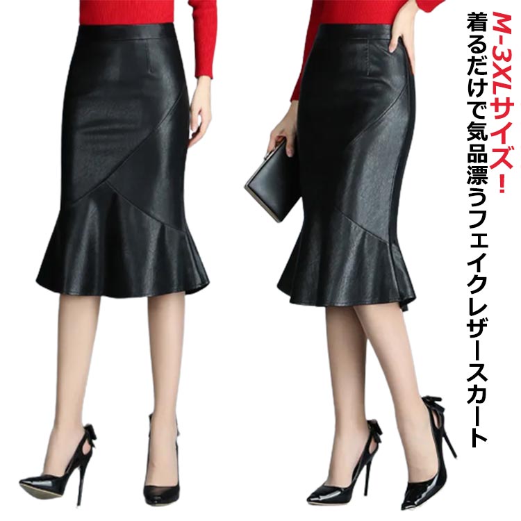 着瘦せ レザースカート ハイウエスト 美脚 レザースカート M~3XLレディースファッション ボトムス スカート