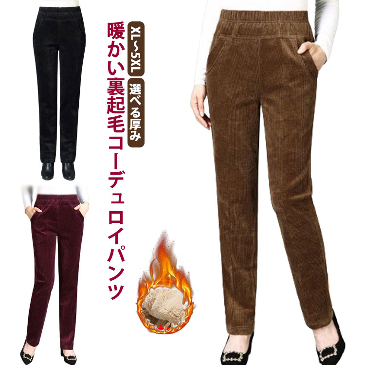 XL~5XL コーデュロイパンツ 選べる厚み 選べる厚み ウエストゴム 暖かいレディースファッション ボトムス パンツ
