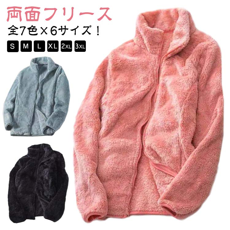 暖かい 両面フリース S~3XL ハイネック S~3XL ジップパーカー もこもこレディースファッション コート ジャケット