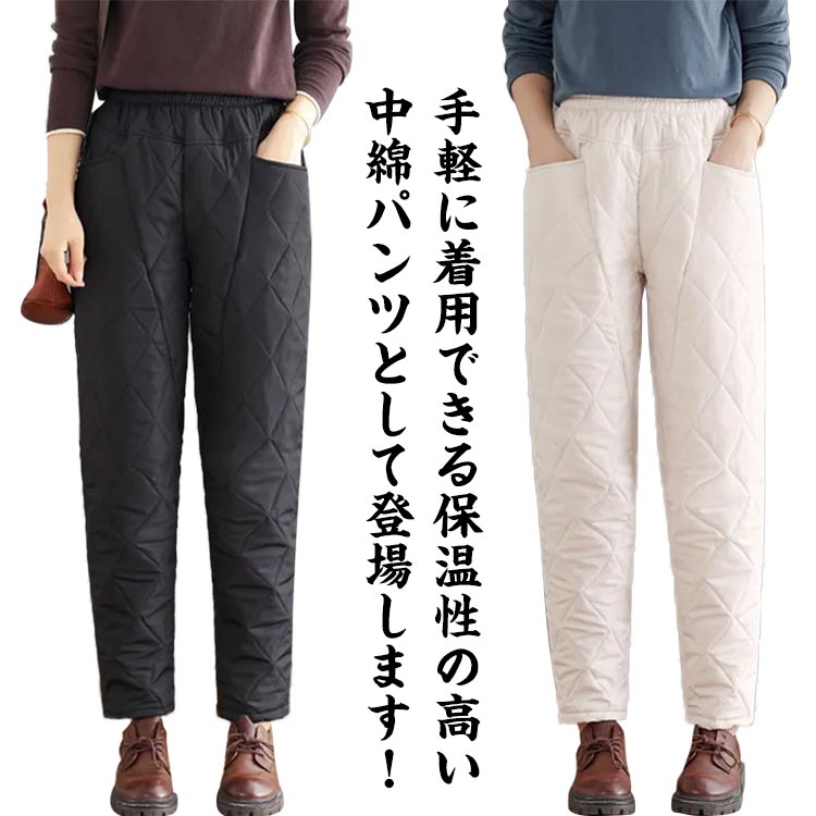 M~5XL 中綿パンツ 暖かい 軽量 ダウン風パンツ ウエストゴム ダウン風パンツレディースファッション ボトムス パンツ