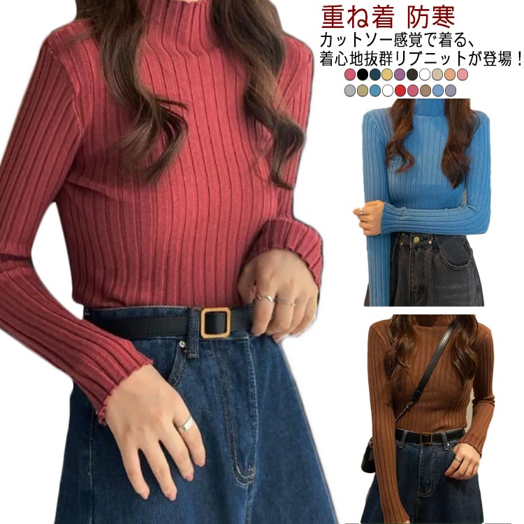~2 リブニット 重ね着 ハイネック 着瘦せ 暖かい 防風防寒 伸縮性レディースファッション トップス ニット セーター セーター