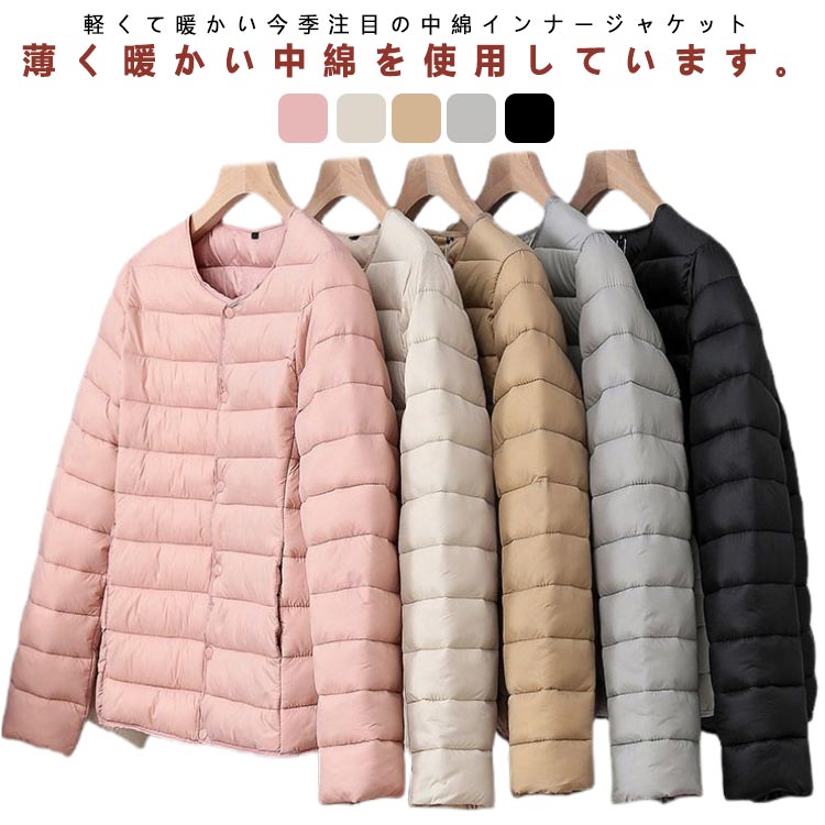 ダウン風 インナーダウンジャケット 中綿 保温 シンプル 軽量 薄手 インナージャケット ノーカラー おしゃれ ショート丈 防寒 インナージャケット ジャケット 無地 重ね着 防風 長袖 コートイン