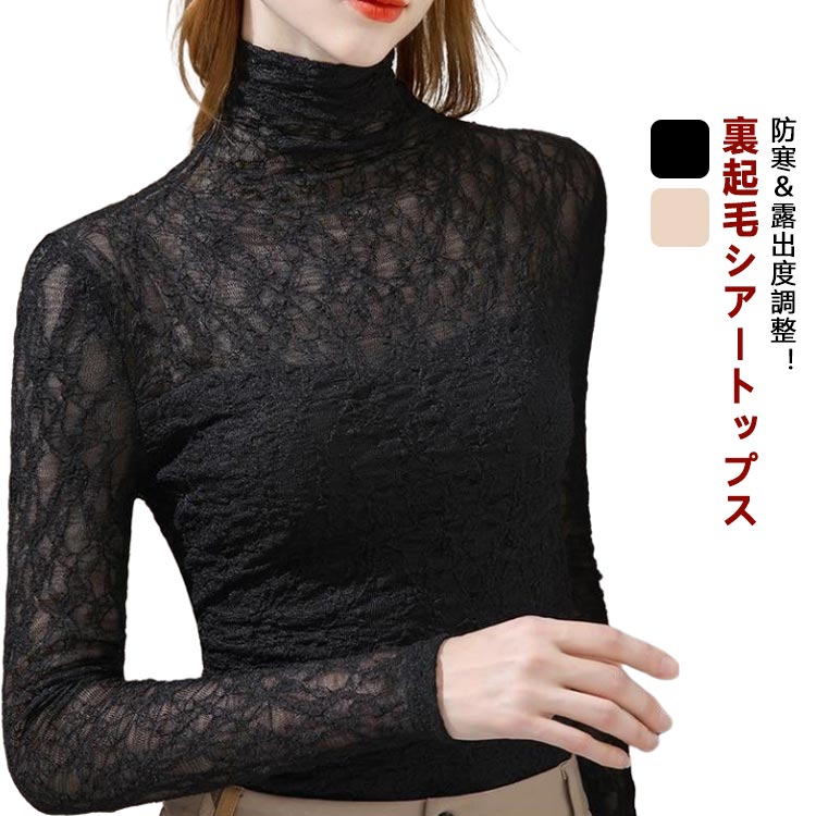S~XL ハイネック シアートップス 露出度調整 防寒 選べる厚みレディースファッション トップス Tシャツ カットソー