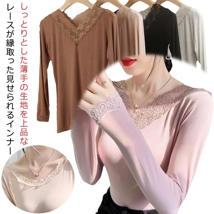 インナーシャツ S~2XL レース きれいめ 重ね着 レース 大人可愛い 肌着レディースファッション トップス Tシャツ カットソー