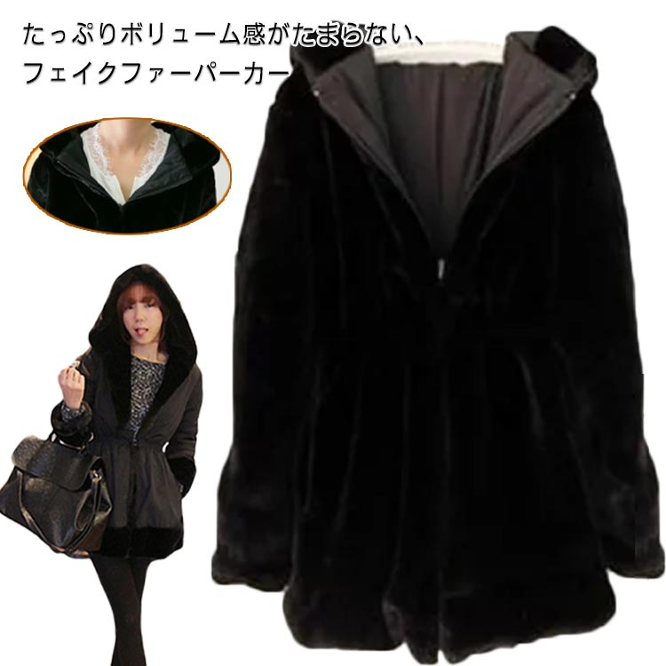 ~2 暖かい ミディアム丈 ファーコート フード付き 体型カバー 可愛い ファーコートレディースファッション コート ジャケット