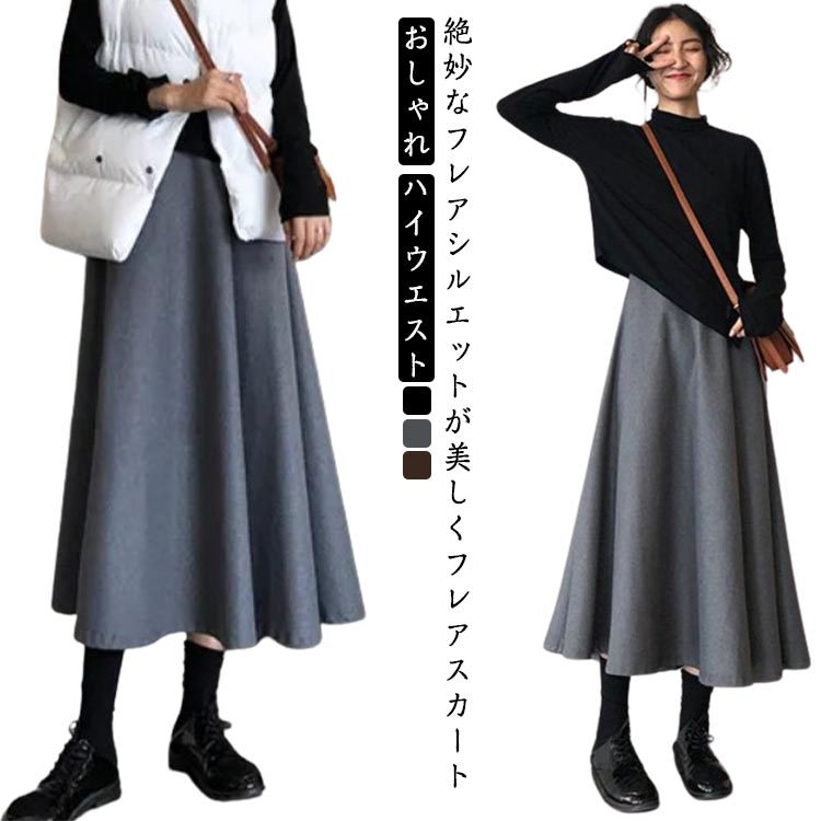 ひざ丈 フレアスカート 秋冬 体型カバー 体型カバー 薄手 きれいめ ~3レディースファッション ボトムス スカート