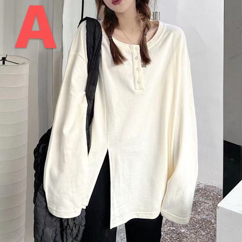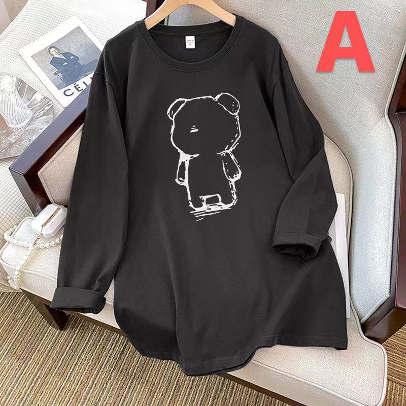 レディース トップス シャツ 春秋 カジュアル 丸首 ゆったり 可愛い 大きいサイズ 長袖 308色-3)