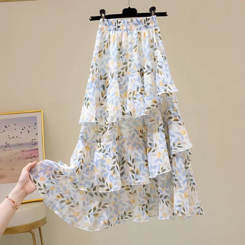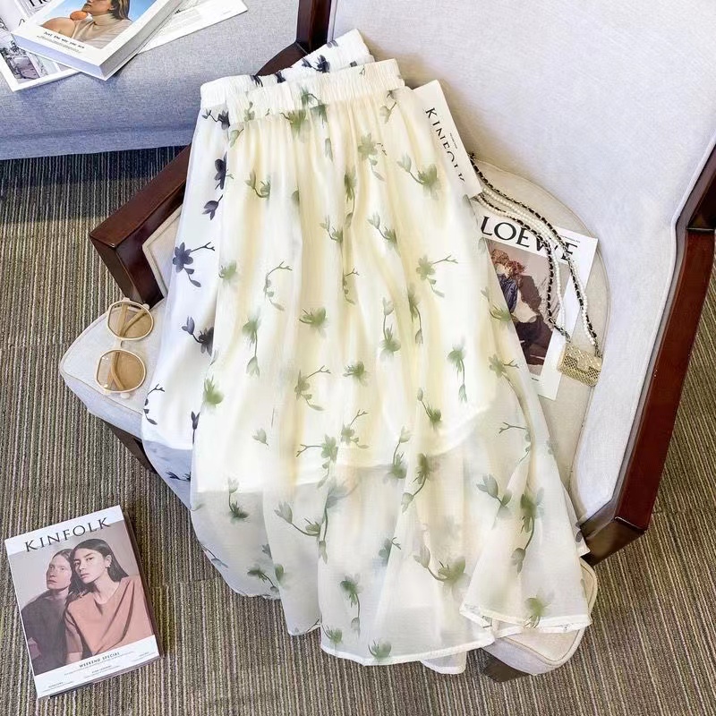 レディース ロングスカート 春夏秋 プリーツ 花柄 チュールスカート ラインレディースファッション ボトムス スカート