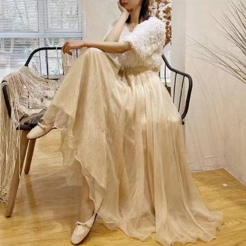 レディース ロングスカート 秋 プリーツ チュールスカート 無地レディースファッション ボトムス スカート