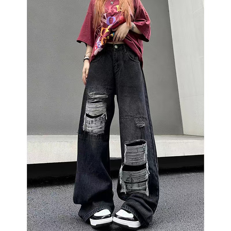 デニムパンツ レディース デニム ジーンズ 大きいサイズ ワイドパンツ ダメージ加工レディースファッション ボトムス パンツ