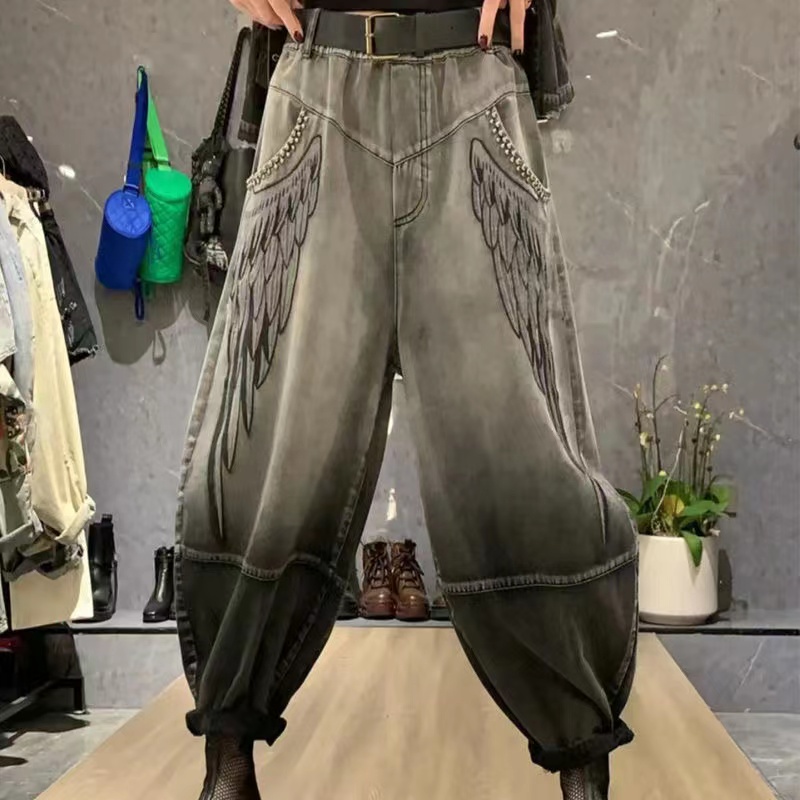 サルエルパンツ デニム ジーンズ デニムサルエルパンツ 長ズボン 刺 レディースファッション ボトムス パンツ