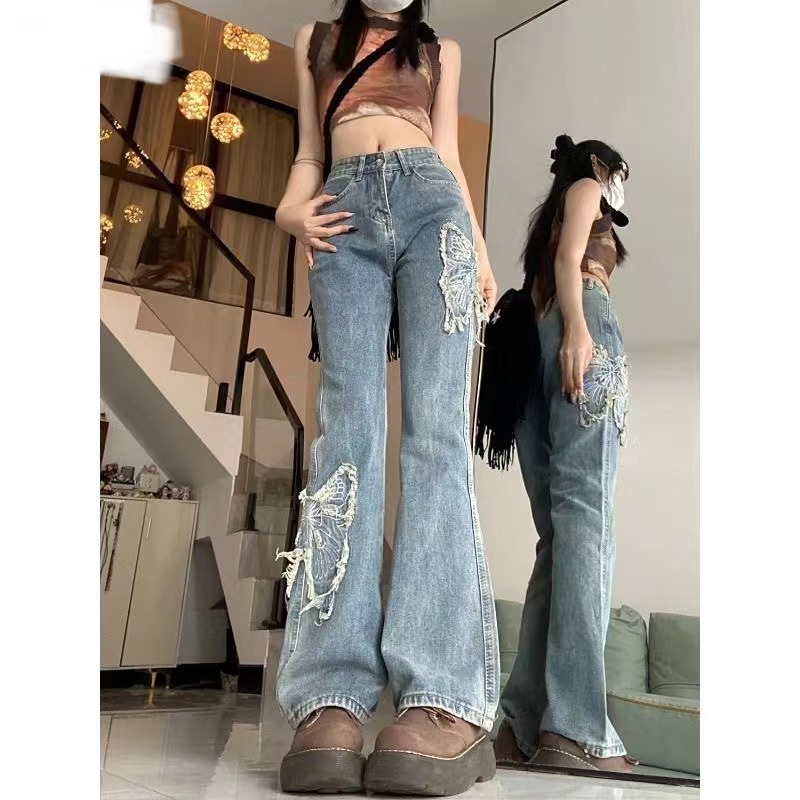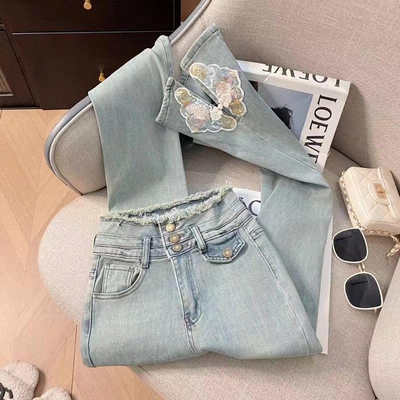 ジーンズ レディース デニム パンツ フレアパンツ 中華風 刺繍 スプライシングレディースファッション ボトムス パンツ