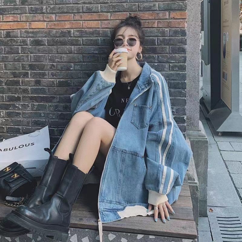 アウター レディース デニムコート 春秋 デニム トップス 通勤 ゆったり 長袖 サイドライン カジュアル おしゃれ 002