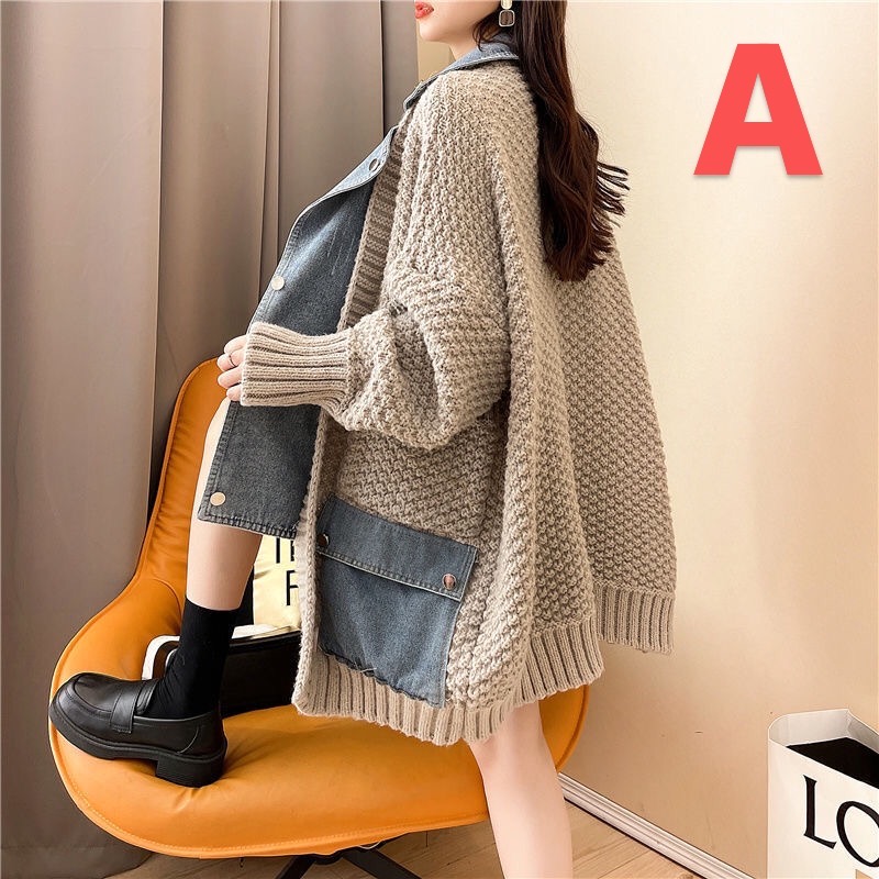 レディース ニットコート セーター ニット デニム 切替 秋冬 大きいサイズレディースファッション コート ジャケット