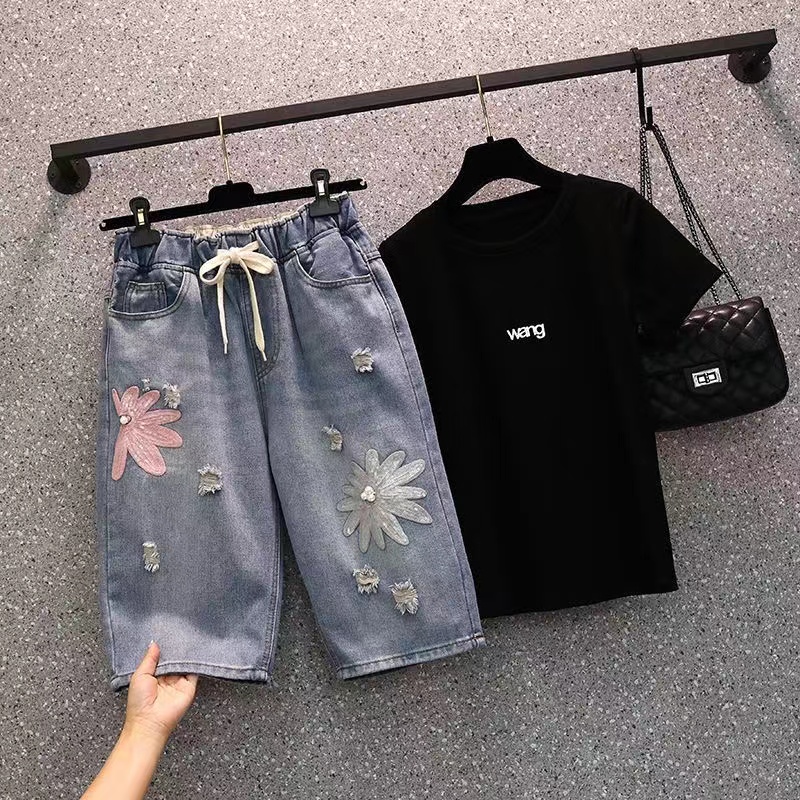 ジーンズ デニム クロップドパンツ デニム 夏 パンツ 花柄 刺 ボトムスレディースファッション ボトムス パンツ