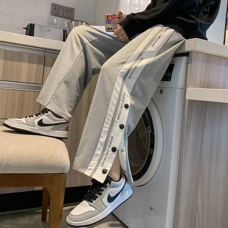 レディース カジュアル パンツ 春夏 ゆったり ボトムス スポーツウェア サイドライン 薄手 英文字 ウエストゴム ブラック グレー 2 029