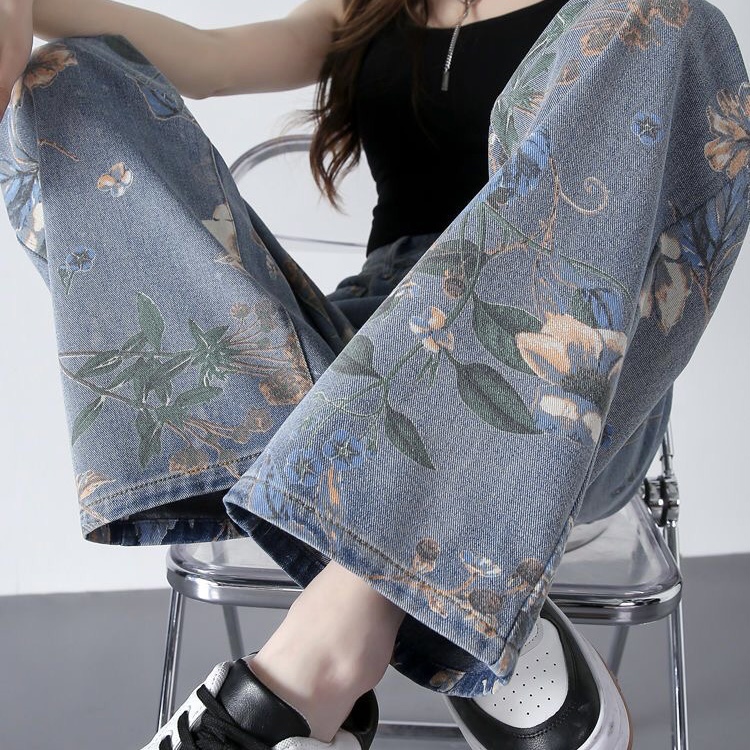 デニムパンツ レディース 美脚 花柄 ワイドパンツ ロングパンツ ボトムス ゆったりレディースファッション ボトムス パンツ