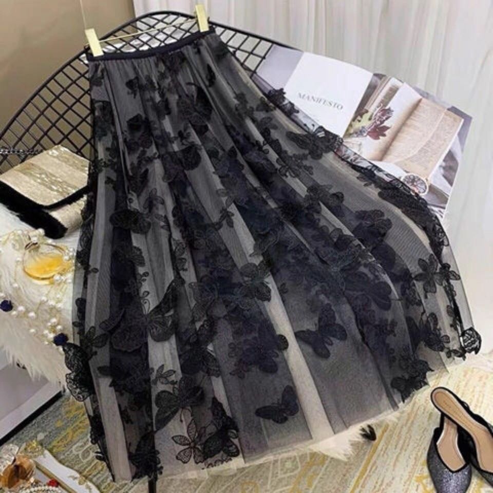 スカート レディース 春秋 蝶柄 ハイウエスト ロングスカートレディースファッション ボトムス スカート