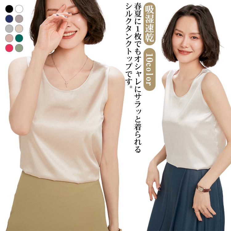 肌着 シルク タンクトップ インナー 絹 シャツ 大きいサイズ 全10色レディースファッション トップス タンクトップ