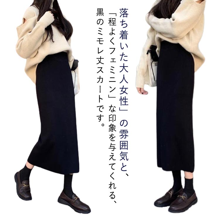 スカート タイトスカート オフィス タイト ミモレ丈 秋冬 ブラック 着瘦せ おしゃれ カジュアル シンプル 無地