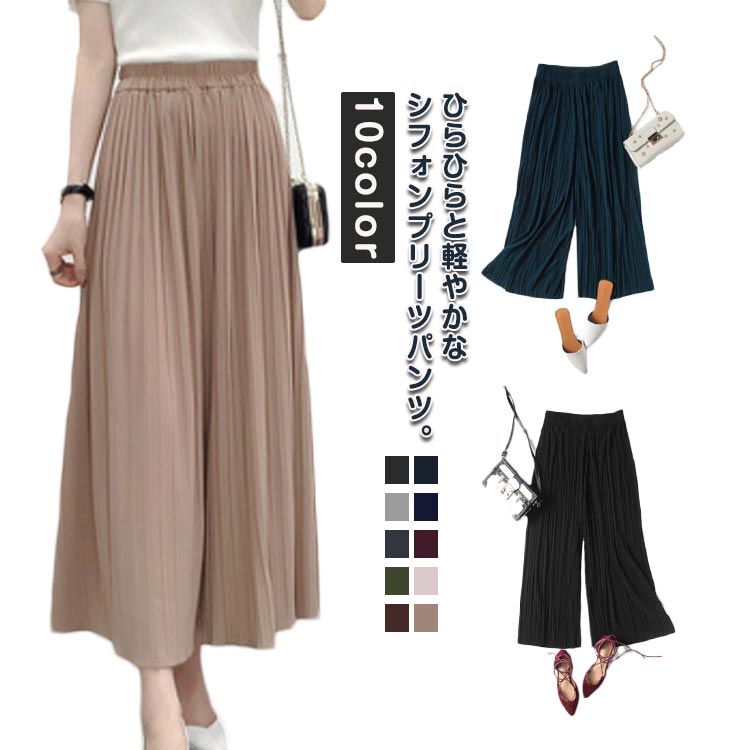 ガウチョパンツ きれいめ スカーチョ シフォンパンツ 九分丈 ロング丈 スカート ゆったり 涼しい 春夏 夏