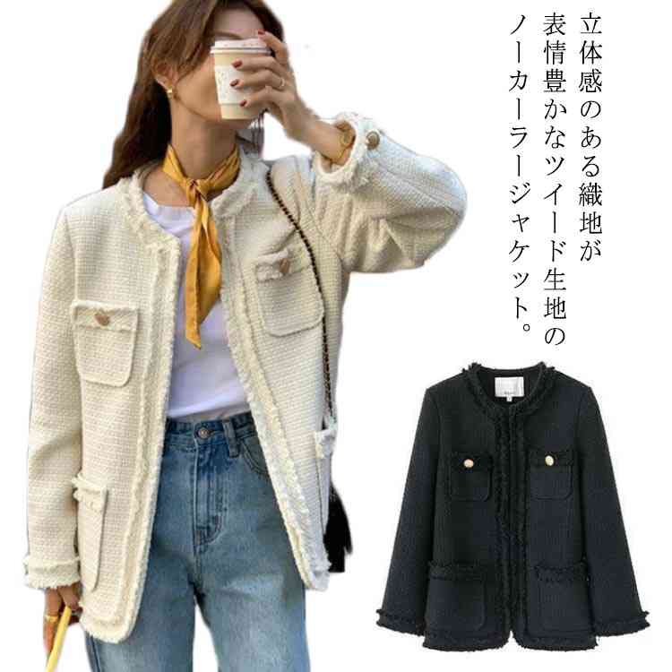 ツイードジャケット ノーカラー ジャケット レディース 羽織り ジャケット ツイード 結婚式 卒園式 フォーマル 春秋
