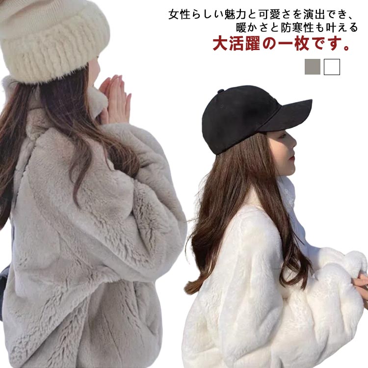 あったかい レディース秋冬 防寒コート フェイクファー 保温 無地 シンプル カジュアル ブルゾン 立ち襟もこもこ ふわふわ 厚手 ジャケット